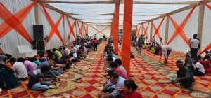 कैपशन-बददी में बजट साईन द्वारा आयोजित बैशाखी लंंगर में प्रसाद ग्रहण करते श्रद्वालुगण।